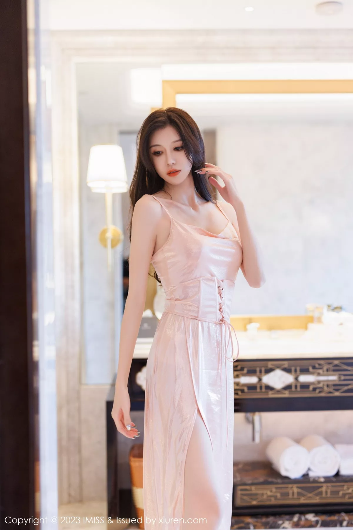 模特@泥鳅鳅 性感写真发布,性感粉色吊带长裙,性感白色蕾丝内衣搭配性感诱人原色丝袜,酒店场景拍摄,清秀外貌婀娜妩媚,酒店场景拍摄,全套写真共66P足量放送,希望大家喜欢和多多支持新人。摄影:范家辉。。。国内知名写真机构[IMISS爱蜜社]第711期泥鳅鳅超薄肉丝诱惑写真。