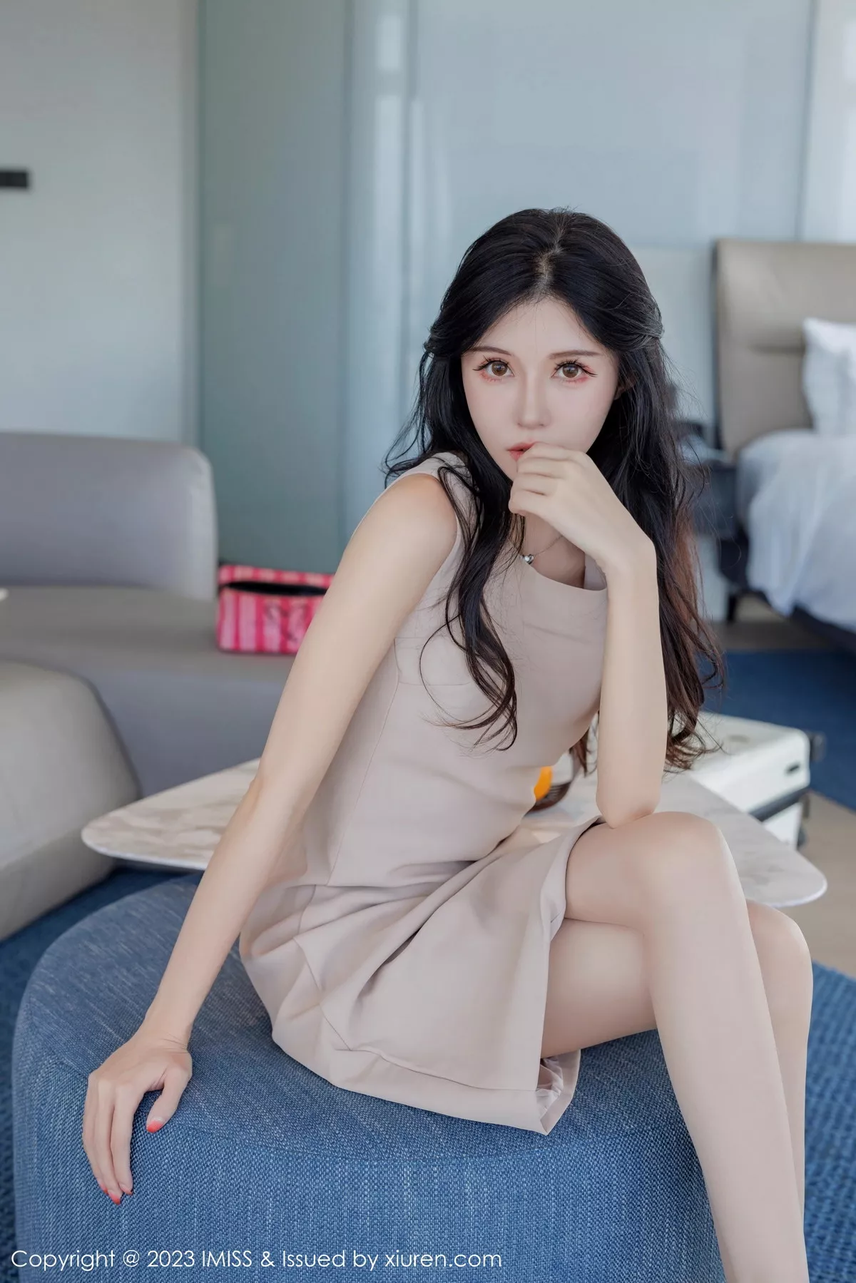 模特@泥鳅鳅 性感写真发布,性感时尚装扮,性感杏色服饰搭配短裙,性感淡蓝色蕾丝内衣搭配性感诱人原色丝袜,酒店场景拍摄,清秀外貌婀娜妩媚,酒店场景拍摄,全套写真共54P足量放送,希望大家喜欢和多多支持新人。摄影:范家辉。。。国内知名写真机构[IMISS爱蜜社]第746期泥鳅鳅蕾丝内衣迷人诱惑写真。