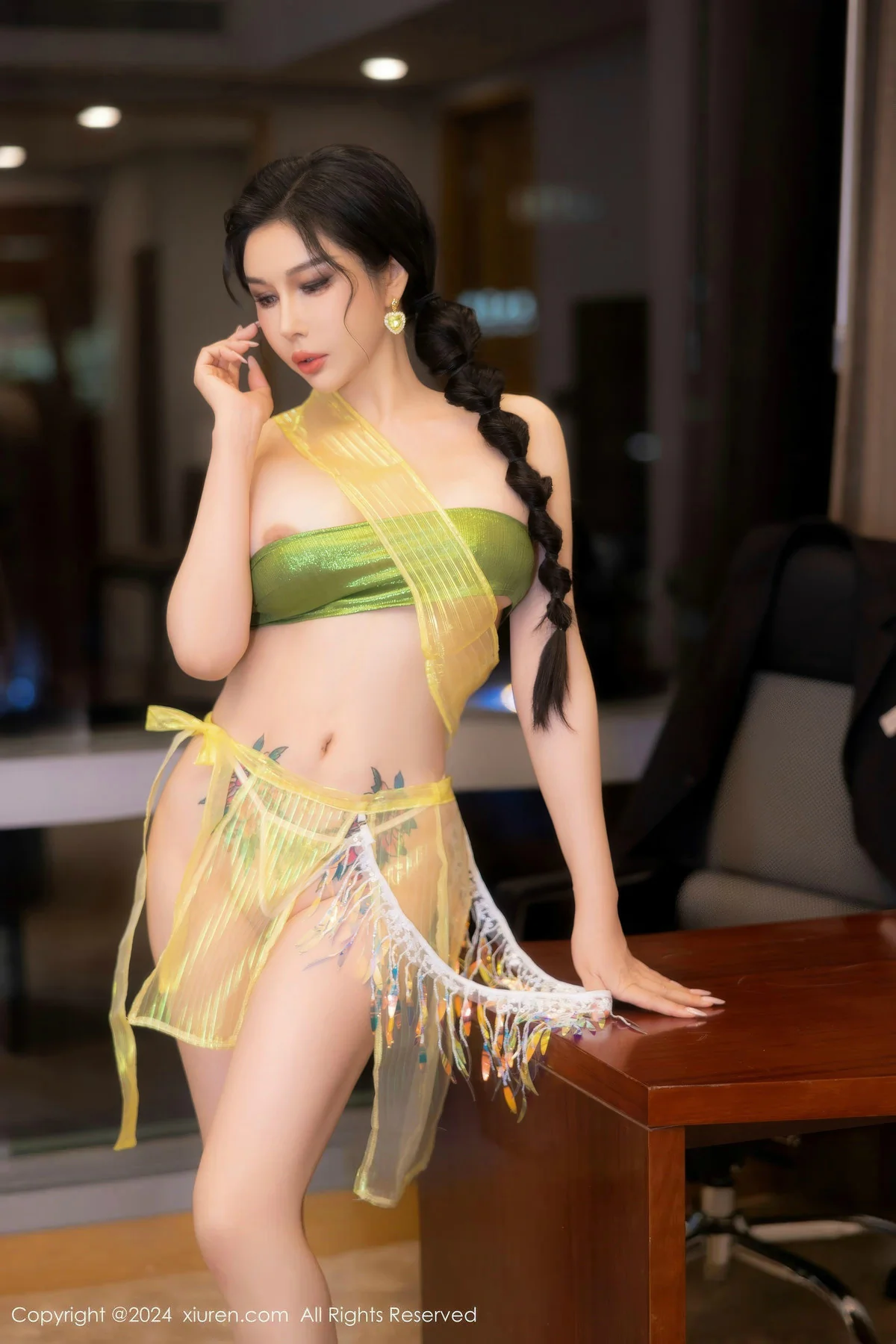 模特@田冰冰 性感写真发布,性感黄色情趣服饰,丰满妩媚妖娆身姿媚态动人,全套写真共55P足量放送,希望大家喜欢和多多支持。模特田冰冰第78套写真作品。。摄影:TOP STUDIO。。。国内写真套图[XiuRen秀人网]第8913期田冰冰秀完美身材惹火写真。 <br> <br> 在夏日的微风中,我们迎来了秀人网田冰冰的最新写真集,这位备受瞩目的网红以她独特的清新气质和灵动表现力,再次征服了镜头。本次拍摄以夏日为主题,巧妙融合了自然与都市元素,通过精心设计的服装、化妆和造型,展现了田冰冰多面的魅力。从阳光洒落的户外场景到精心布置的室内环境,每一张照片都捕捉到她自然流露的情感,让观众仿佛置身于一个充满活力的夏日梦境中。田冰冰的每一个姿势都经过细致调整,配合专业的灯光和镜头选择,营造出既真实又梦幻的视觉效果。后期处理则进一步强化了色彩的层次感,使整体画面更加生动立体。这不仅是一次视觉的盛宴,更是摄影艺术的深度探索,值得每一位爱好者细细品味。