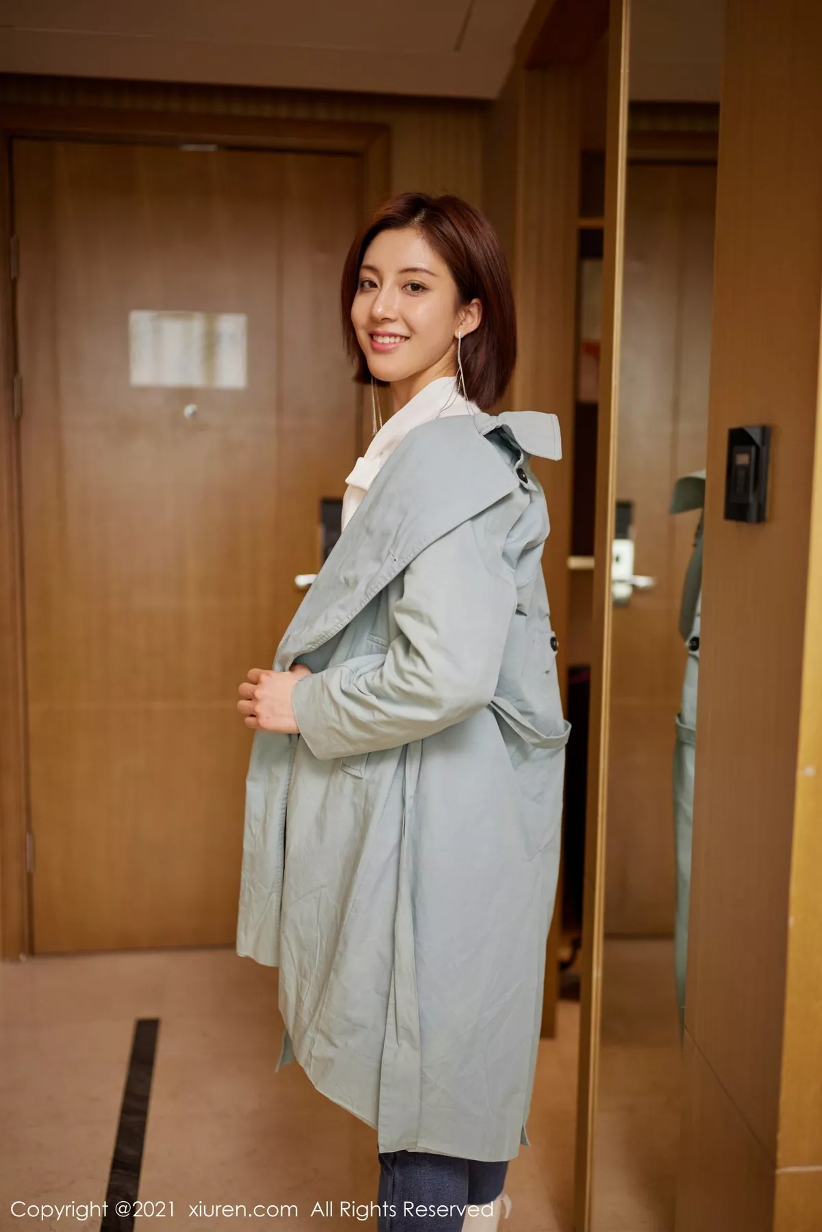 [XiuRen秀人网] 2021.04.13 No.3298 林文文yooki [59P] 模特@林文文yooki 牛仔裤主题写真发布,绿色的大衣与率性动人的牛仔裤下阿罗多姿的身段,隐隐散发出女性的魅力,全套写真共59P足量放送,希望大家喜欢和多多支持。。国内写真套图[XiuRen秀人网]第3298期林文文黑丝裤袜诱惑写真。 <br> <br> 当晨光穿透薄雾,林文文yooki身着丝质吊带裙倚在落地窗前,锁骨处的珍珠项链随着她的呼吸轻轻起伏。化妆师特意为她设计了清透的「水光肌」底妆,用珊瑚色腮红在颧骨处晕染出被春日亲吻过的痕迹。摄影师调整着Profoto B1X灯头的角度,让柔光箱产生的漫反射为她镀上朦胧光晕,这支EF 50mm f/1.2L镜头恰好捕捉到她垂眸时睫毛投在脸颊的蝶影。