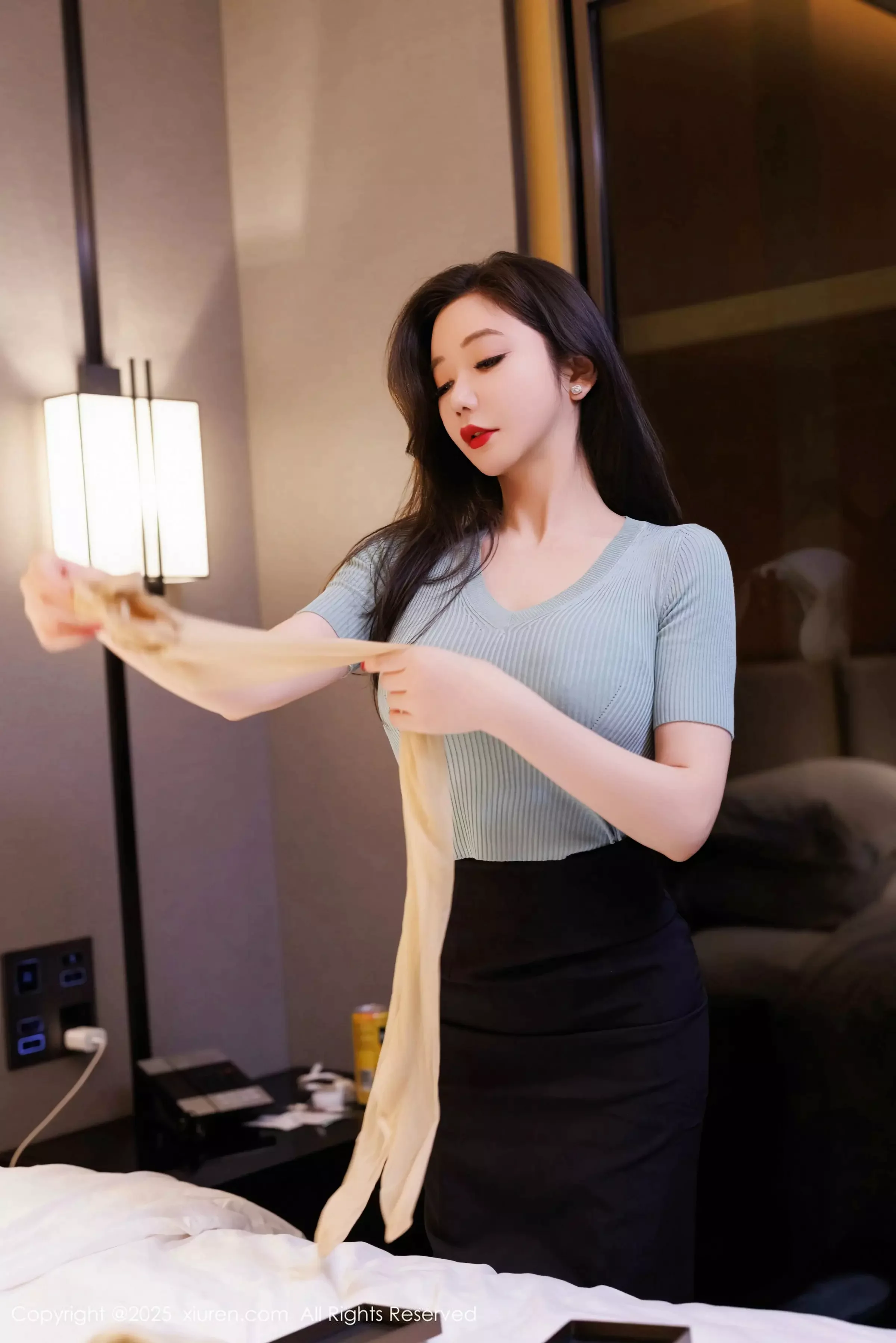 性感女神@心妍小公主 私房写真发布,性感蓝色T恤搭配性感黑色包臀裙,媚态妖妖艳艳摄人魂魄,全套写真共62P,希望大家喜欢和多多支持。模特心妍小公主第116套写真作品。。摄影:Wolf Man。。。国内写真套图[XiuRen秀人网]第10060期心妍小公主秀翘臀美腿诱惑写真。 <br> <br> 在春意盎然的摄影棚内,心妍小公主身着薄荷绿雪纺长裙坐在藤编秋千上,化妆师特意为她设计了蜜桃色腮红与琉璃唇釉的搭配,使她在柔光箱打造的逆光中仿佛笼罩着一层朦胧光晕。造型师将她的长发编织成鱼骨辫,点缀着鲜嫩的铃兰碎花,当她在镜头前轻抚花瓣时,裙摆的渐变薄纱随着动作泛起涟漪,这场拍摄正是要捕捉她作为“梦心玥”的灵动瞬间。