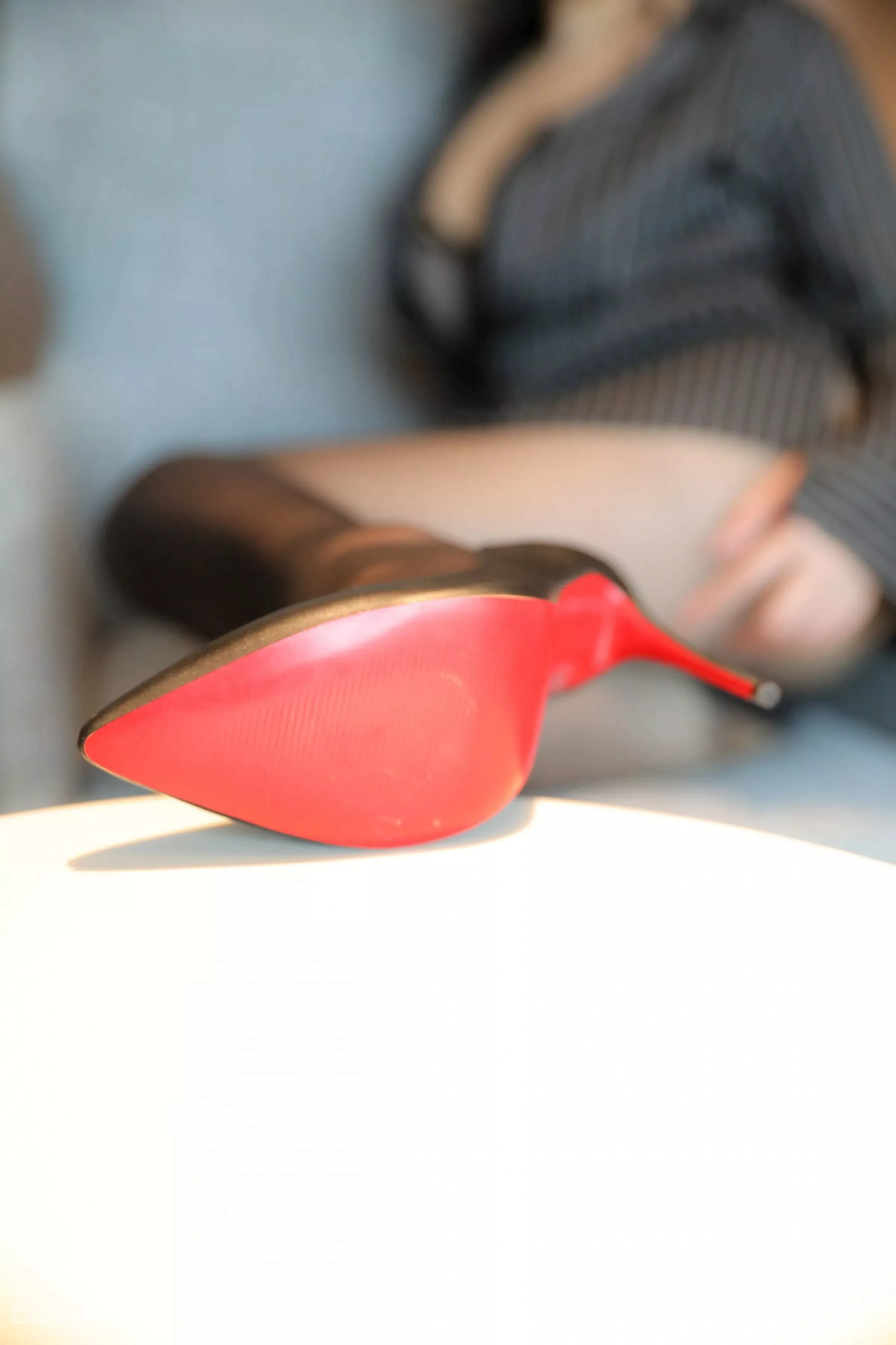 这组作品收录了萱静在摄影棚内的精彩表现。首套造型采用浅蓝色针织开衫搭配白色蕾丝吊带,下身选择水洗蓝牛仔短裙,整体色调清新明快。化妆师特意为她打造了清透的春日妆容,重点突出眼部的自然晕染,使用粉色系眼影与裸色唇釉相呼应。发型设计成微卷的慵懒长发,几缕发丝刻意垂落耳侧,增添了几分随性感。在布光方面,主灯采用大型柔光箱从右侧45度角打光,辅以左侧反光板补光,营造出柔和均匀的光线效果。摄影师选用佳能EF 85mm f/1.2L镜头,利用大光圈虚化背景,突出人物主体。在姿势指导上,萱静或倚靠白色背景墙微微侧身,或坐于高脚凳上轻抚发梢,每个动作都自然流畅,展现出专业模特的镜头感。