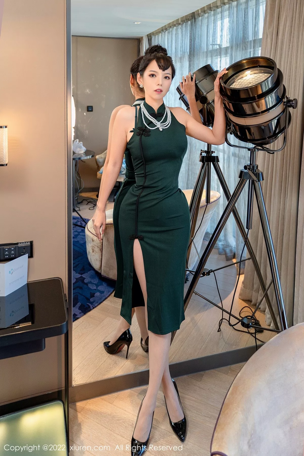 模特@大美妞儿 性感写真发布,一个会跳舞的小姐姐,身体柔韧,活力四射, 身体无比弹力永动机一般的姑娘。墨绿色修身旗袍美腿肉丝黑高跟,写真发布 修长美腿 ,纤细腰身,妖娆面容 精致面孔。 希望大家喜欢这种满满的欲望以后可以解锁更多姿势, 全套写真共计64P,新人入圈大家多支持多助力 ,让新人看到希望可以留在秀人平台。摄影:熊-猫-人。。。国内写真套图[XiuRen秀人网]第5646期大美妞儿秀完美身材诱惑写真。 <br> <br> 当梧桐叶旋落于青石阶前,大美妞儿携着秋日私语主题写真闯入我们的视野。这组编号No.5646的摄影作品在晨光微熹时开拍,造型师特意选用驼色羊绒斗篷搭配枫叶橙渐变纱裙,化妆时用金棕色系眼影在模特的眼尾晕染出落叶纹理,发型师则用电卷棒制造出蓬松的麻花辫,发间别着真实的银杏叶片。摄影师在四合院的琉璃瓦屋檐下布置了柔光箱,让清晨的斜射光与3200K影视灯交织,用50mm定焦镜头捕捉模特俯身拾取落叶时颈项的优雅曲线。