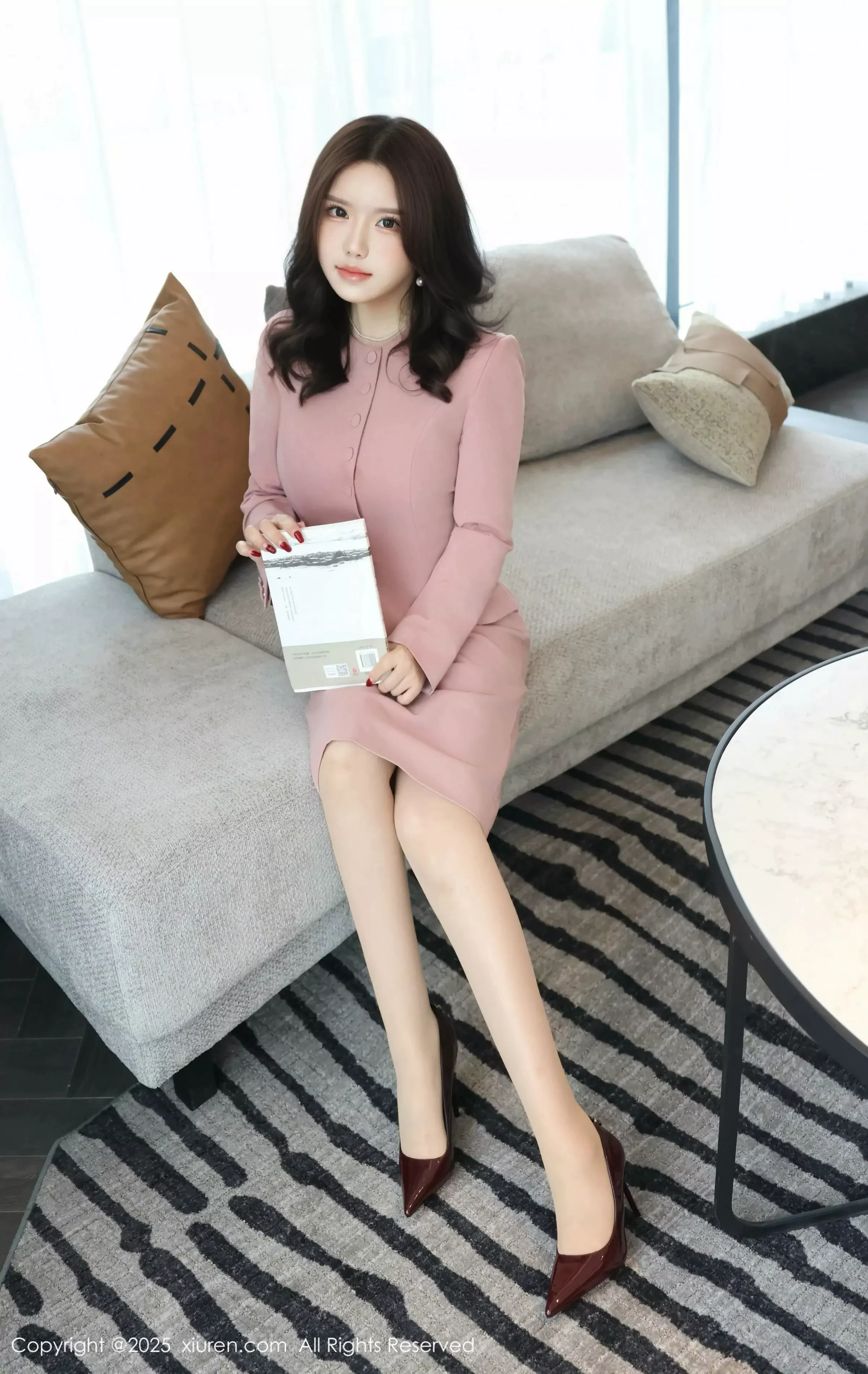 模特@小薯条nienie 性感写真发布,性感粉色职业装,性感白色情趣内衣搭配性感诱人肉色丝袜,面容清秀身材苗条多姿,全套写真共107P足量放送,希望大家喜欢和多多支持。模特小薯条nienie第44套写真。。摄影:女摄小凡。。。国内写真套图[XiuRen秀人网]第10020期小薯条秀惹火身材诱惑写真。 <br> <br> 当晨光穿过梧桐叶隙洒在青石板上时,小薯条nienie正提着棉麻长裙的裙摆轻盈转身,蕾丝边袖口在逆光中泛起柔和光晕。这是秀人网最新发布的10020号图集中最动人的瞬间,摄影师特意选用佳能EF 85mm f/1.2L镜头,在f/2.8光圈下捕捉到她睫毛上跳动的光斑。化妆师为她设计的蜜桃色腮红与裸粉唇釉,在晨光中呈现出恰到好处的通透感,发型师精心打理的慵懒波纹卷发则用上了碎花发带点缀,与耳畔的珍珠流苏耳环共同勾勒出春日森系少女的清新轮廓。