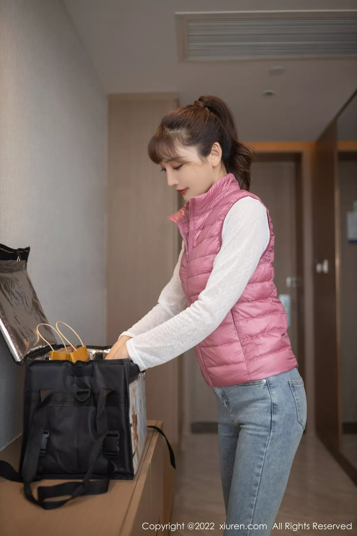 模特@陆萱萱 性感写真发布,角色扮演外卖配送员,情节设计拍摄,送单上门,粉色羽绒背心,白色轻透收身上衣,淡蓝色牛仔裤,精致粉色内衣搭配诱人原色丝袜,身姿妩媚多姿撩人心怀,全套写真共91P足量放送,希望大家喜欢和多多支持。。国内写真套图[XiuRen秀人网]第4493期陆萱萱无内肉丝惹火诱惑写真。 <br> <br> 在初夏微凉的清晨,摄影师透过取景框凝视着正在调整裙摆的陆萱萱。她身着棉麻质地的米白色连衣裙,裙摆处手工刺绣的铃兰图案随着她的转动若隐若现。造型师美桃酱正在最后检查她海藻般的长卷发,将几缕碎发精心打理成看似随意却充满空气感的弧度。这是陆萱萱首次尝试森系风格的拍摄,化妆师特意选用哑光质地的底妆产品,在颧骨处轻扫裸粉色腮红,眼妆部分则用香槟色珠光眼影提亮内眼角,打造出宛若晨露般清澈的眼神。