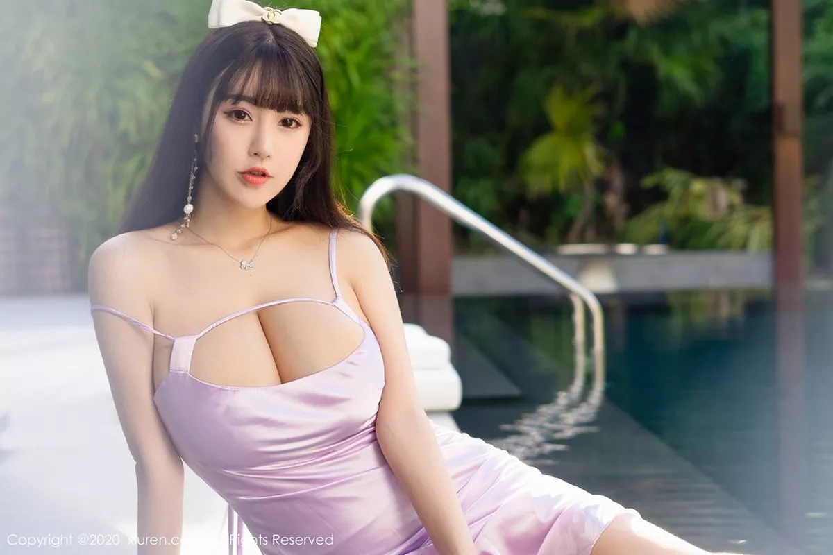 [XiuRen秀人网] 2020.07.21 No.2353 朱可儿Flower [48P] 性感女神@朱可儿Flower三亚旅拍写真发布,紫色典雅的礼裙泳池淋漓湿身系列,全套写真共48P,希望大家喜欢和多多支持。。国内写真套图[XiuRen秀人网]第2353期朱可儿秀豪乳诱惑写真。 <br> <br> 在初夏的晨光中,朱可儿Flower以一身纯白镂空刺绣连衣裙开启了本次写真的拍摄。造型师特意将她的长发编成松散鱼骨辫,发间点缀着新鲜铃兰,与裙摆的立体花瓣刺绣形成呼应。化妆师采用"水光肌"底妆技法,在颧骨处轻扫珍珠高光,眼妆则用蜜桃色系渐变晕染,睫毛保持根根分明的自然卷翘。摄影师选用佳能EF 85mm f/1.2L镜头,在清晨八点的柔光环境下,利用反光板在模特眼中塑造出标志性的菱形光斑。