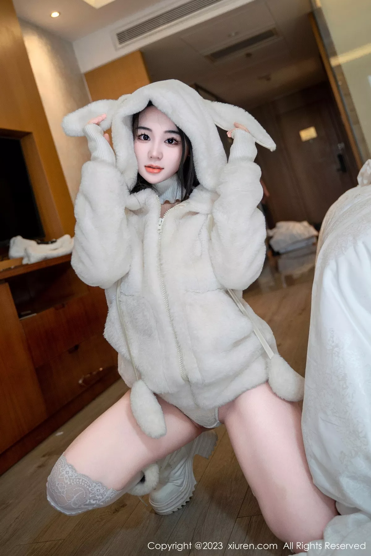 新人@汐汐爱吃草莓 性感写真发布 汐汐爱吃草莓 新人新气象。一个身体柔韧舌吐莲花的软妹子。 身材纤细 ,邻家女孩一般的大学在校生。本套图为白色毛绒兔宝宝系列,从青涩到放飞自我,由浅入深,慢慢开发,你会发现进入一个宝藏女孩的世界是多么的美妙。全套写真共68P足量放送,希望大家喜欢和多多支持新人。摄影:熊猫人。。。国内写真套图[XiuRen秀人网]第7018期汐汐爱吃草莓蕾丝内衣撩人诱惑写真。 <br> <br> 在初夏微醺的晨光中,我们跟随网红模特汐汐爱吃草莓的脚步,走进这座被绿意包裹的玻璃花房。她身着棉麻质地的米白色连衣裙,裙摆的蕾丝花边随着她轻盈的步履轻轻摇曳,仿佛将整个夏天的温柔都穿在了身上。化妆师特意为她打造了清透的"蜜桃乌龙"妆容,眼影选用暖橘色系与腮红自然衔接,唇釉则采用水光质地的珊瑚粉,在阳光下会折射出细碎的光芒。发型师用电卷棒制造出慵懒的韩式波浪,再别上手工制作的干燥花发卡,与场景中的真实植物形成巧妙呼应。